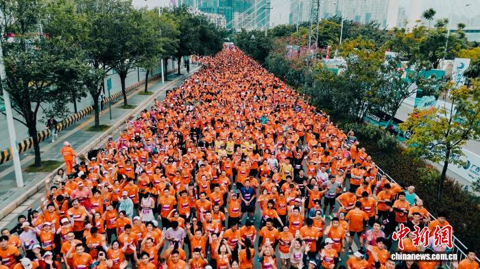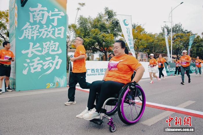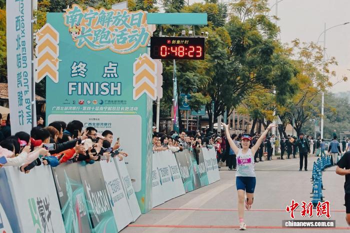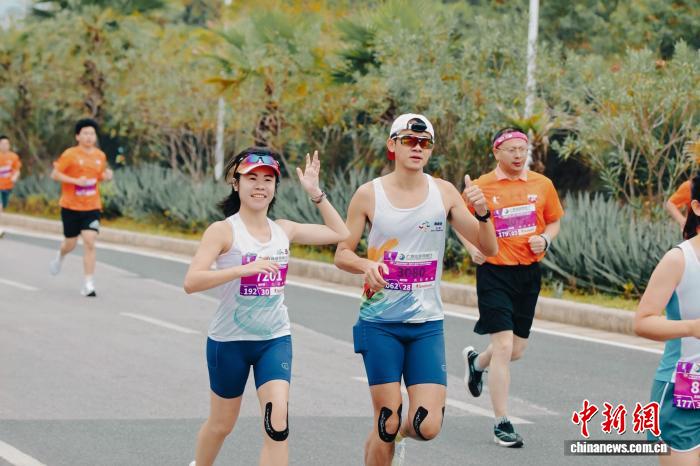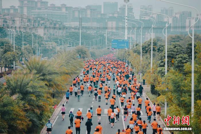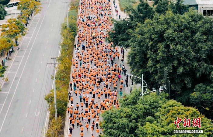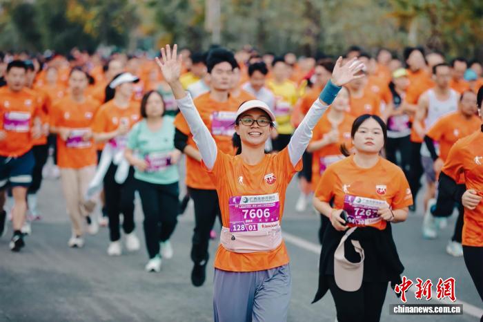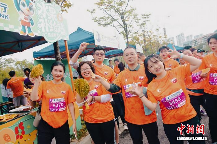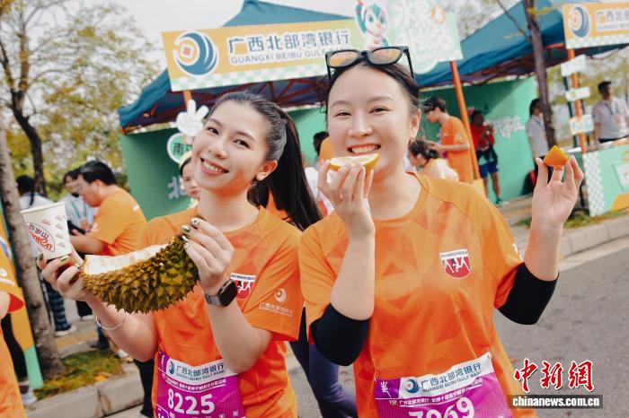 图为跑者正在火果补给站弥补能量。北宁市体育局 供图