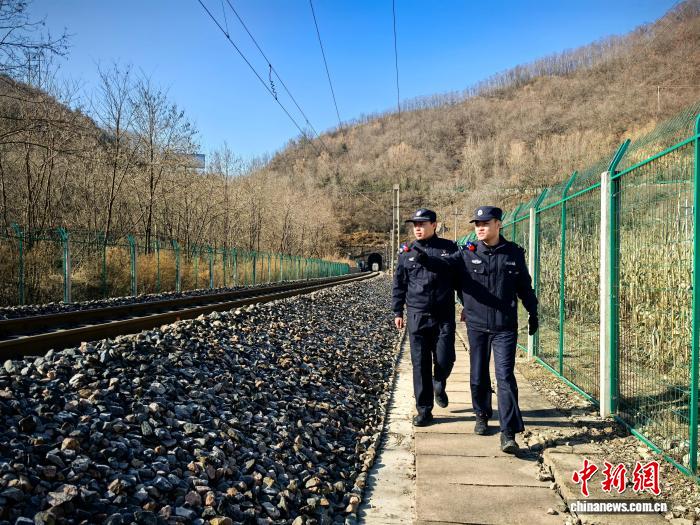 图为西安铁道公安处秦岭站派出所平易近警正在城间巷子遥眺铁讲线。王小东 摄