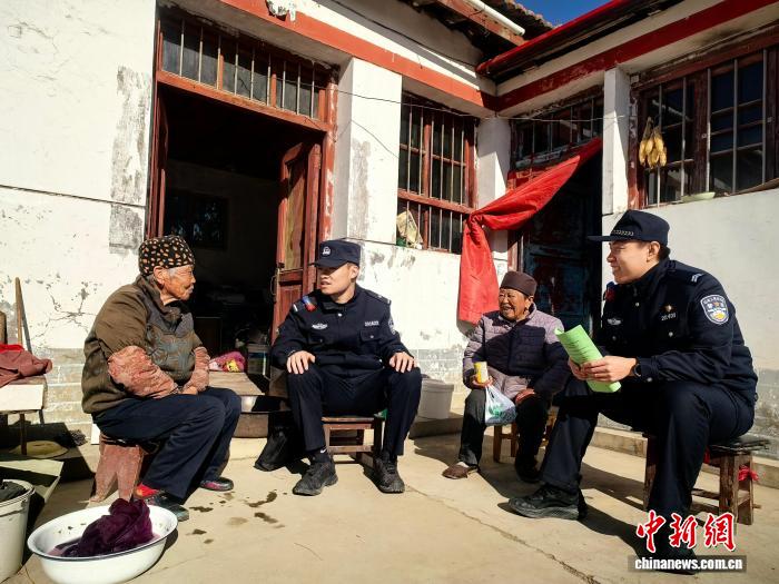 图为西安铁道公安处秦岭站派出所平易近警深化田间天头背老城宣扬铁道平安学问。王小东 摄